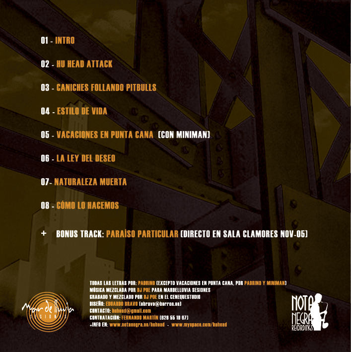 Hu Head es un grupo creado en 2003 por DJ Poe y Padrino. El primero es conocido por sus sesiones de música negra en lugares como la sala Tatou o el Mercado de Fuencarral, mientras que Padrino proviene de grupos de hardcore y punk.