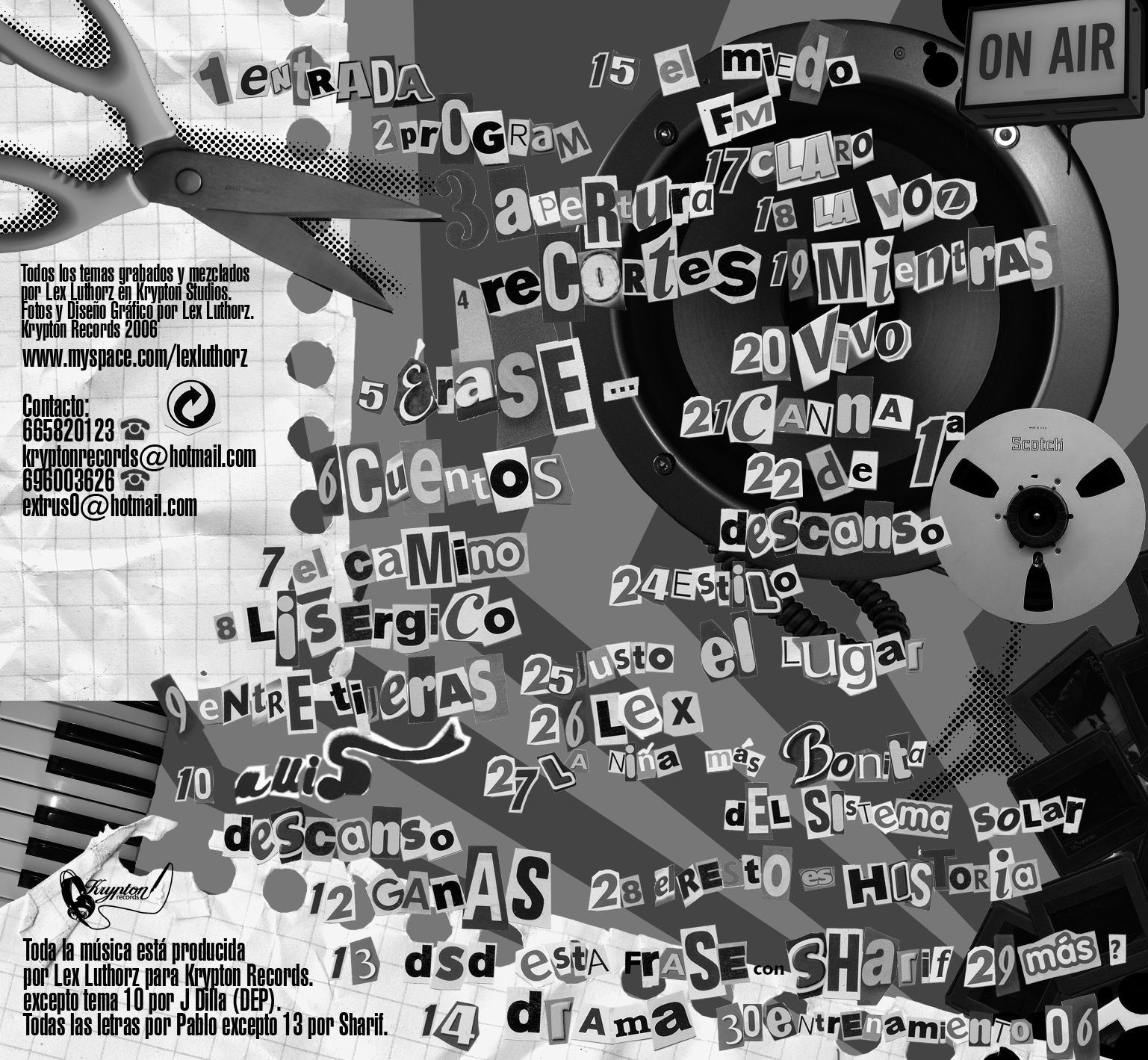 Ahora en 2006 Pablo y Lex Luthorz se embarcan en su primer proyecto conjunto, "Recortes". Una muestra del estilo de Pablo y los beats del productor, con un sonido clásico cargado de samples bien seleccionados. Todas las letras son de Pablo, salvo en el tema 13 en el que colabora Sharif, y todos los beats de Lex Luthorz, con la excepción del tema 10, que utiliza una instrumental de J Dilla, como pequeño homenaje al mítico productor de Detroit.